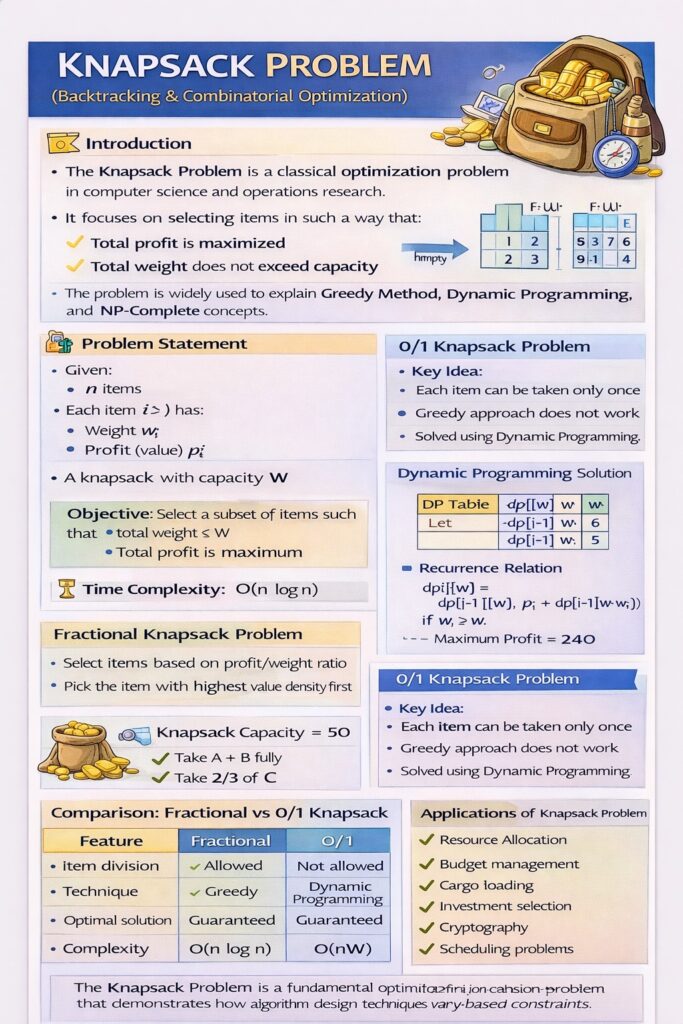 The problem is widely used to explain Greedy Method, Dynamic Programming, and NP-Complete concepts.