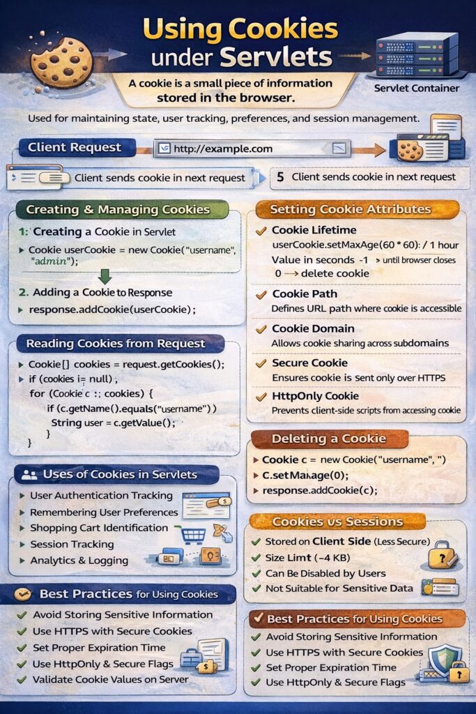 Below is a clear, structured, and detailed discussion of Using Cookies under Servlets.